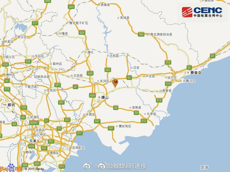 #河北唐山发生5.1级地震#中国地震台网正式测定:07月12日06时38分在河北唐山市古冶区(北纬39.78度,东经118.44度)发生5.1级地震,震源深度10千米。@中国地震台网速报