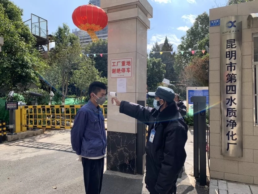 昆明市第四水质净化厂“入门即测”,购置消毒水酒精等用品要求职工上下班及进食前对手进行消毒处理