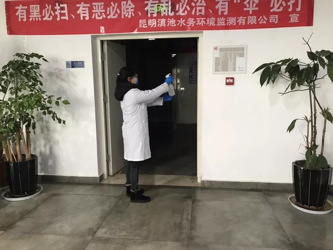 监测公司按计划完成各水质净化厂的样品检测,对公司大厅、办公区域、实验室进行全面消毒