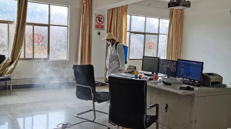 云南昭通彝良公司组织人员对办公、生产区域、职工个人车辆喷洒消毒液