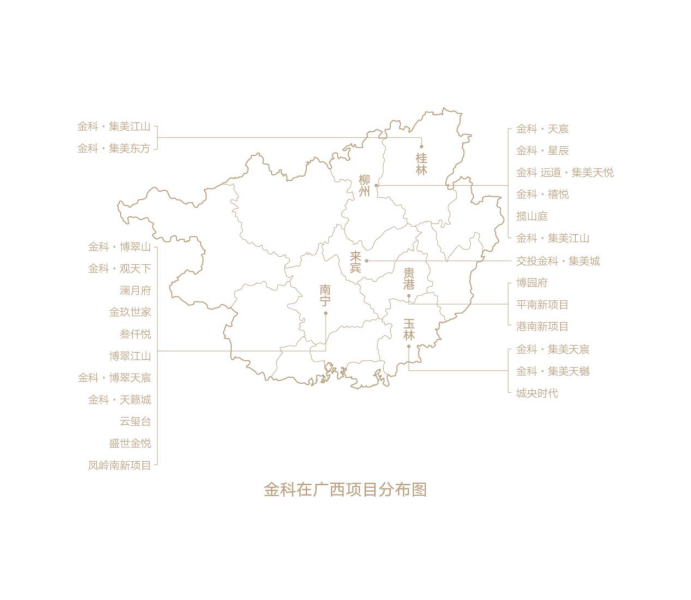 从2016年至今,金科云广区域以迅猛的发展势头,稳居广西房企第一梯队,用4年的付出与耕耘,将优质产品与暖心服务奉献给每一位金科的家人。2020年,金科云广区域完成10城40盘美好布局,并以实际行动践行着品牌的理念。