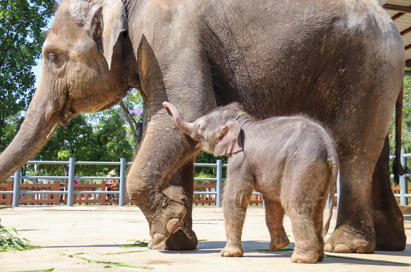 据了解,小萌象是由吉象园母象“安安”顺产生下,该小象在景区工作人员的精心呵护下,已经满月,目前身体健康。