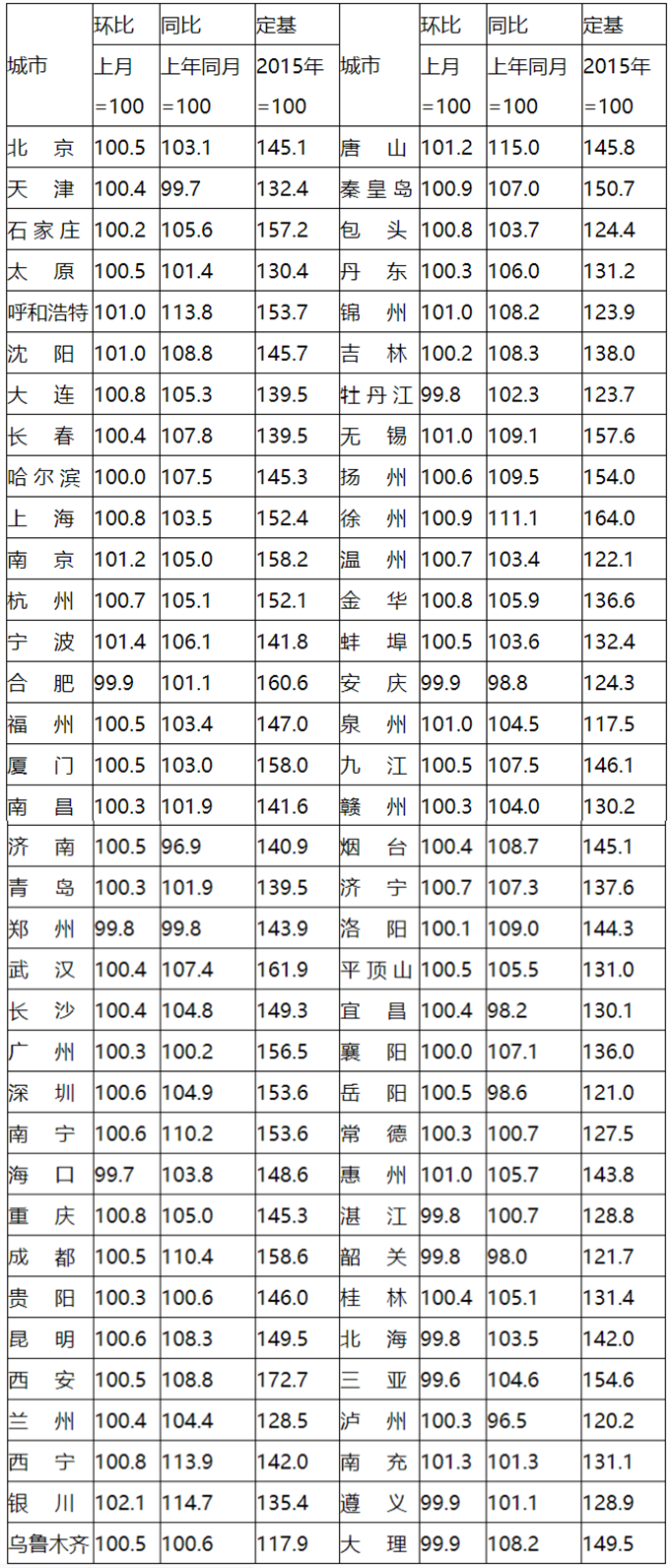 2020年5月70个大中城市新建商品住宅销售价格指数