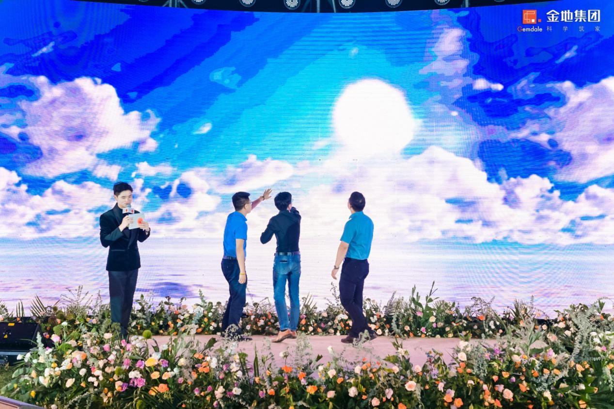 在发布会上充满仪式感与创意的点亮环节上,伴随金地集团昆明公司的众领导用手“托起”的冉冉金日,在当晚,照亮了整个滇池湖畔,也即将照亮整个春城的新生活方式。