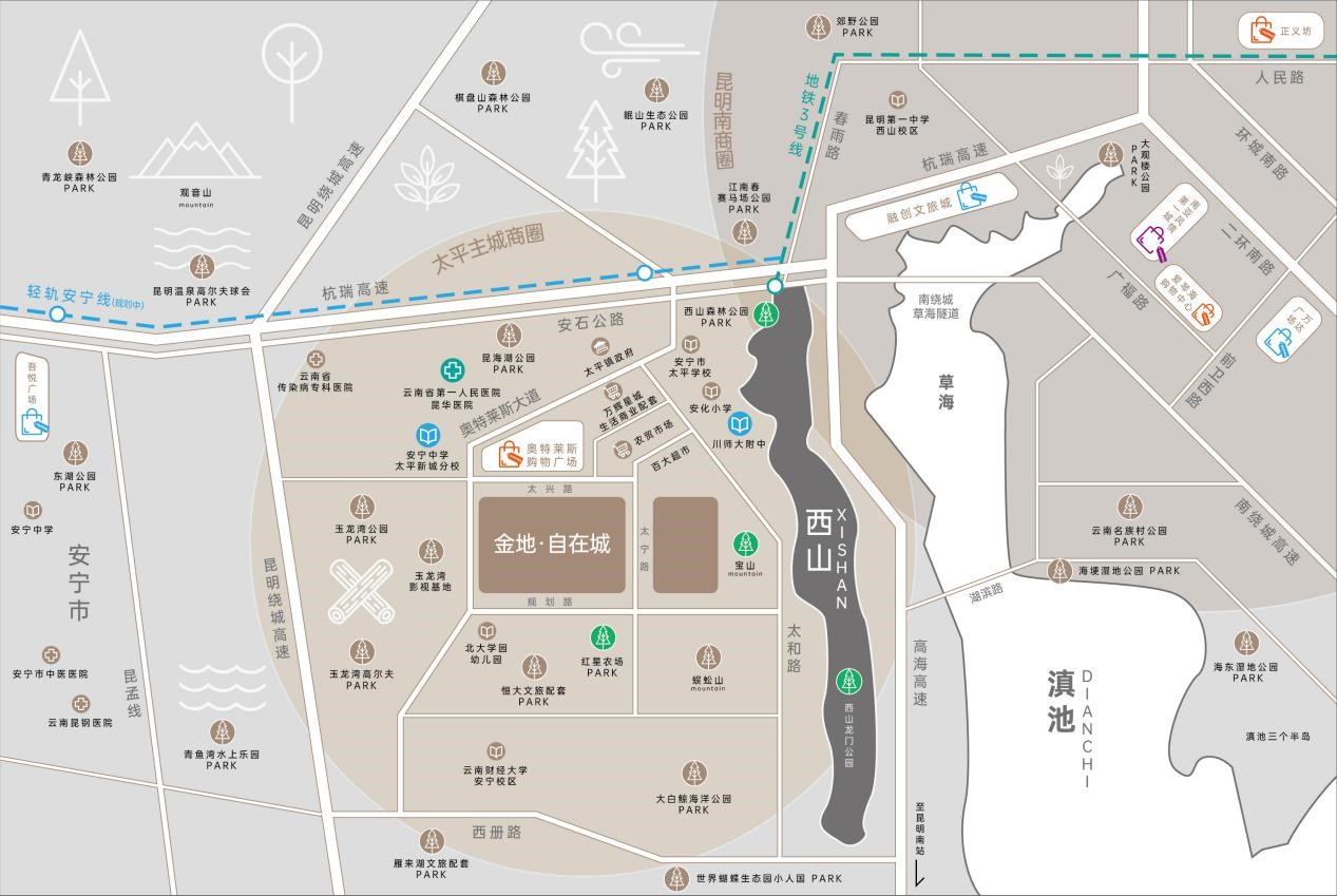 “太阳,从西边升起”代表了对以往生活方式的颠覆,同时也代表了西昆明,安宁板块的崛起。目前昆明三个卫星板块,太平相比距离较远的呈贡、空港新城,在政府斥千亿巨资后,加速了发展进程,属于昆明半小时都市生活经济圈,森林覆盖率70%,属全国罕有,生活配套一应俱全,目前已经完全融入昆明,逐渐显现昆明城市副中心的地位,已经成为都市居民眼中的“西昆明”。