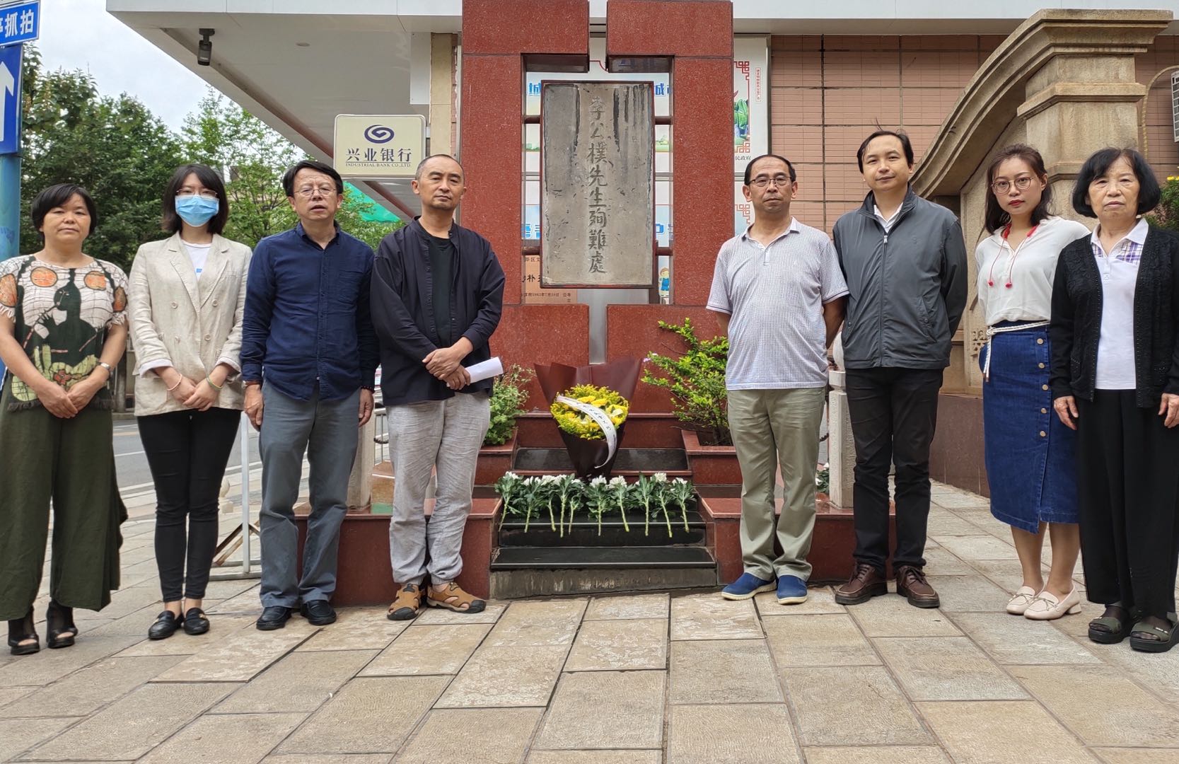 仪式由闻一多支部主委洪海波主持,盟员们来到先烈的纪念碑前敬献花蓝和鲜花,王雷、贺奇分别致纪念悼词。参加活动的还有昆明闻一多支部副主委李斌、盟员褚俊青、马悦玲、马原、杨丽萍及特邀代表西南联大文创中心主任杨晓玲、龙泉古镇文化研究院研究员刘燕等。