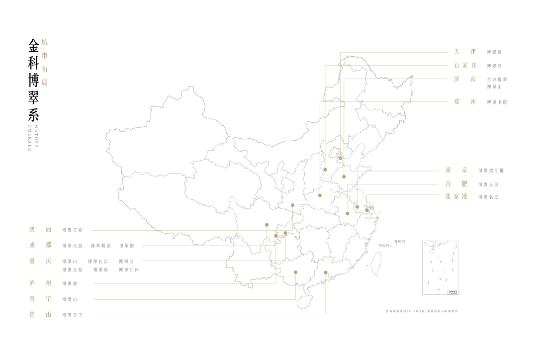 博翠系,作为金科三大产品线的核心之力作,面向城市中产阶级美好生活的住宅消费需求,坚持“四大核心”的严选标准,布局核心25城等一二线城市,以现代东方的美学体验,高档轻奢的档次体验,打造萃取东方的人文华宅。