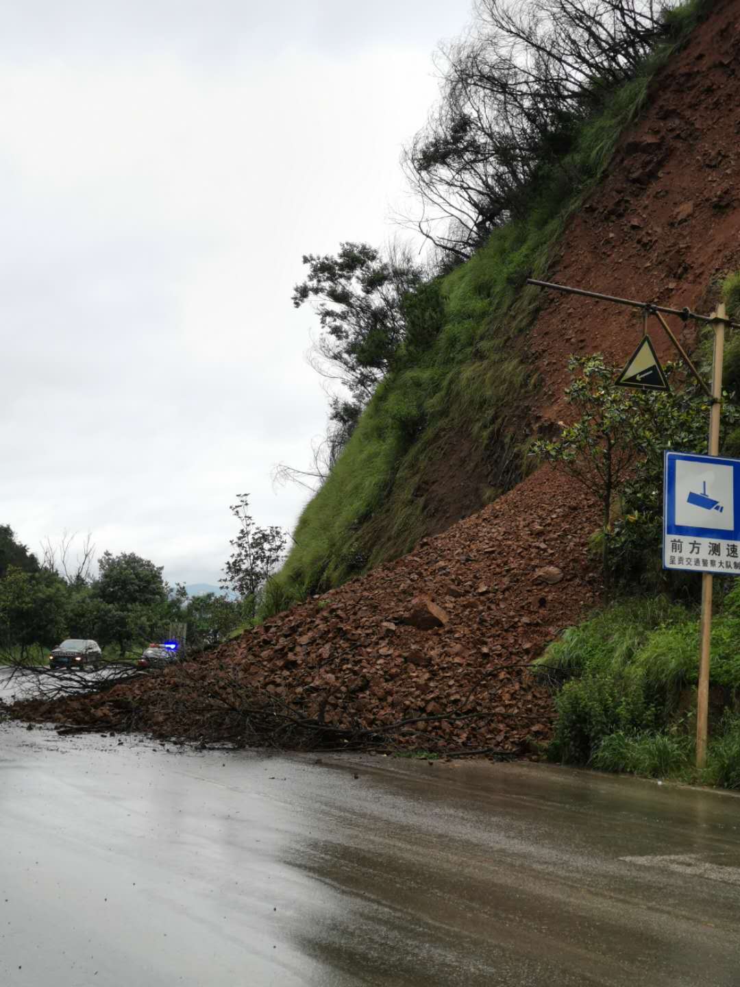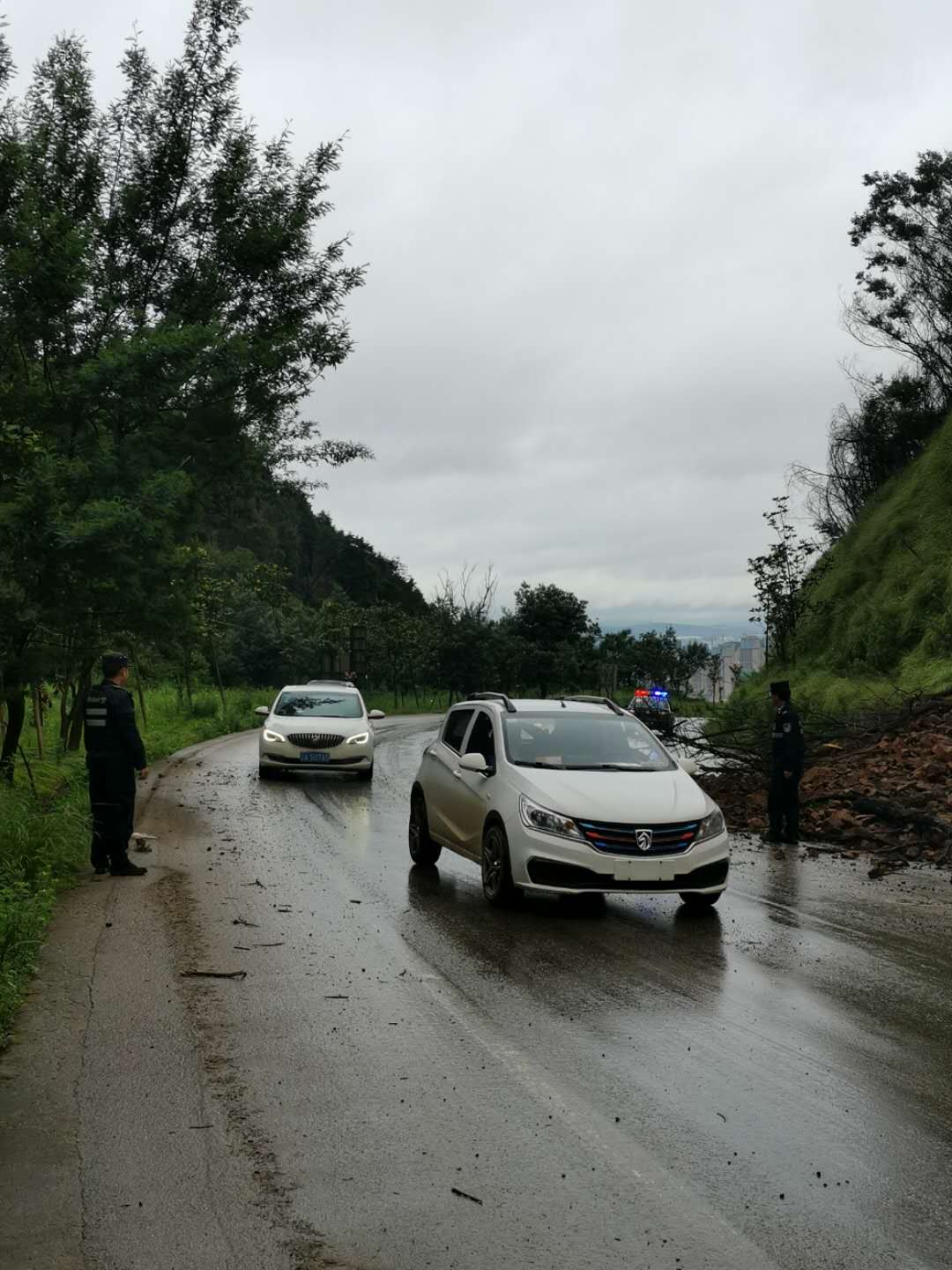 昆明信息港讯 7月21日8时24分,昆明特警机动82号车接到指令,称老昆石路大风垭口处山体滑坡,落石占据半个车道。
