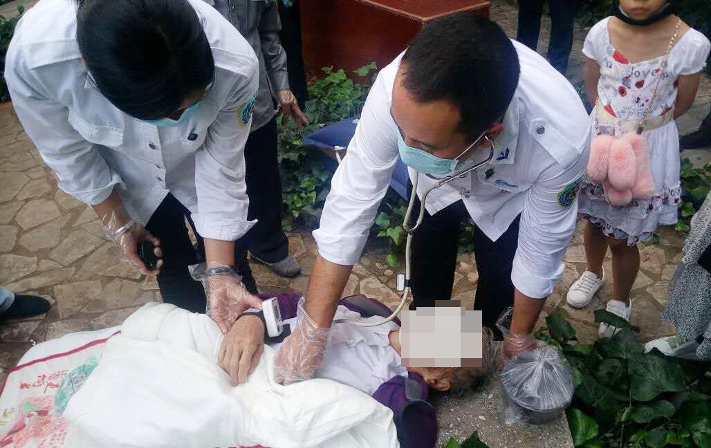 辅警刘涛、李鹏轻轻地把老人平卧在旁边的石凳上后,民警蒋钰璘一边对老人进行初步检查,一边拨打120。很快,急救医生赶来对老人实施现场救治。不一会儿,老人醒了。这时,老人的家人也闻讯赶来了。