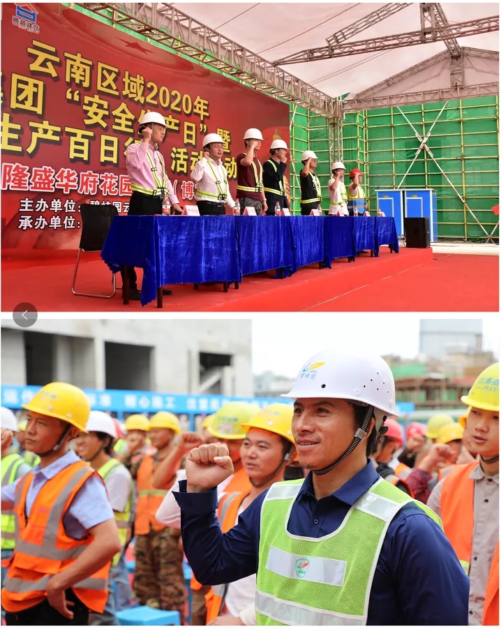 国悦置地总经理额楚钢、腾越云南公司总经理王亮对参与本次活动的来宾表示衷心感谢,并对隆盛府项目的安全工作和“安全百日行”活动铺排进行了汇报。
