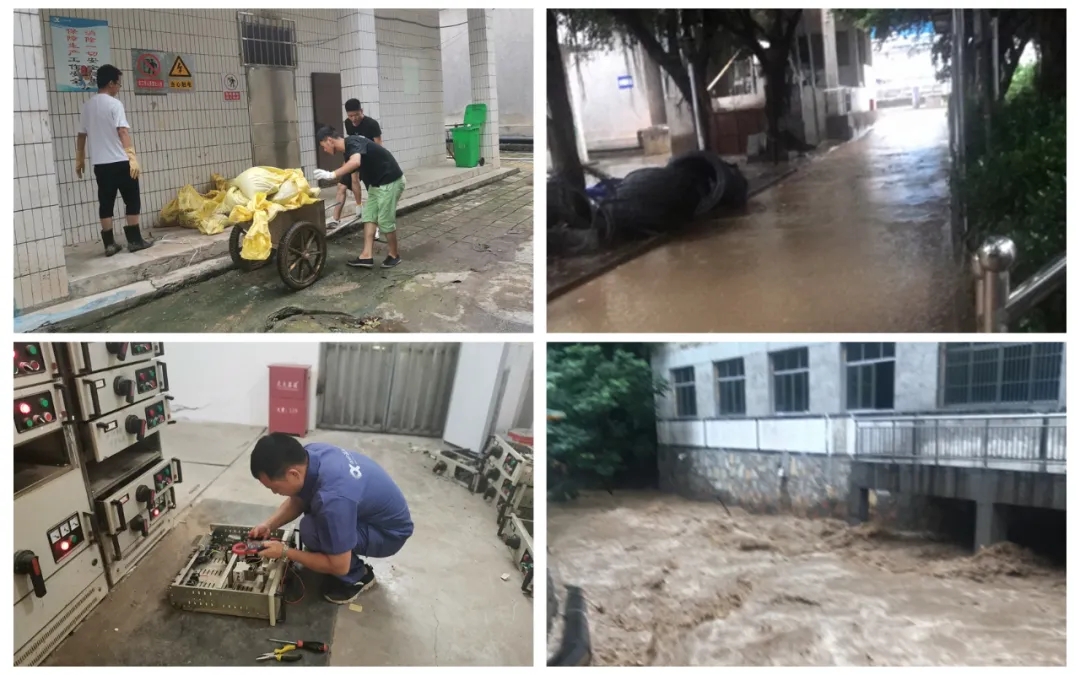 在抢险的过程中,外围泵站的水泵及线路发生汛情故障,增加了抢险难度。面对突发情况,技术部副经理刘虎带着应急抢修组员迅速赶到泵房,连夜排查故障,从当晚21时到第二天清晨才顺利完成抢修,在简单的修整之后又投入到线路核查和厂区环境清理工作中。7月12日早8点,在应急小组和抢险救援小组的正确处置下,厂内路段和其他区域积水明显下降,保障了生产设备运行正常。