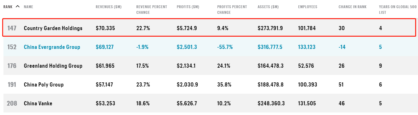 昆明信息港讯 8月10日,《财富》杂志发布2020年世界500强排行榜。碧桂园连续第四年入选榜单,排名进一步提升至147位,居全球上榜房企第一。