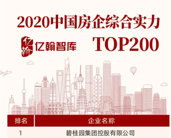昆明信息港讯 8月18日—8月21日,由亿翰智库主办的“2020中国房地产业战略峰会”在上海隆重举行,并发布2020中国房企综合实力TOP200研究成果。其中,碧桂园位列“2020中国房企综合实力TOP200”榜首,这是碧桂园连续第三年蝉联综合实力榜单第一,展现公司强劲的增长势头。此外,碧桂园还入选“2020中国房企品牌价值TOP100”TOP2。