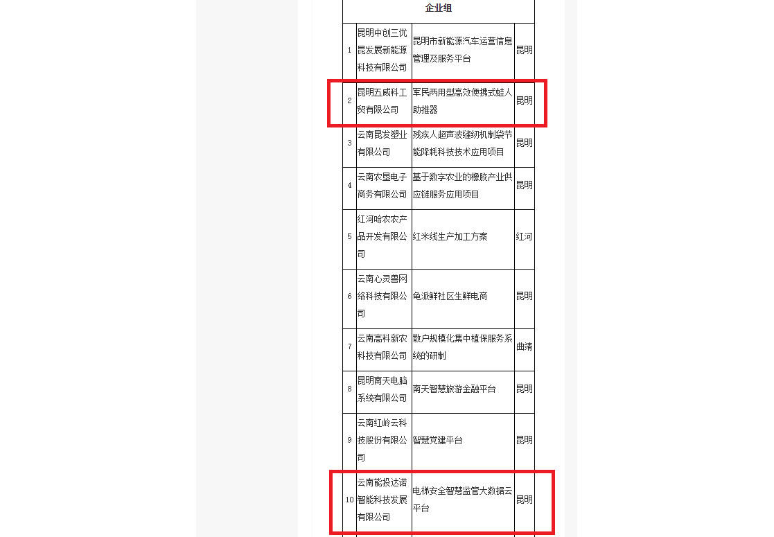 其中,云南能投达诺智能科技发展有限公司的项目《电梯安全智慧监管大数据云平台》和昆明全波红外科技有限公司的项目《红外热成像精密测温筛查仪镜头研制》曾于2020年4月参加由昆明高新技术产业开发区举办的“2020昆明高新杯”创新创业大赛,经过激烈的角逐成功晋级到总决赛,并在总决赛中分别获得了三等奖和组织奖的良好成绩。