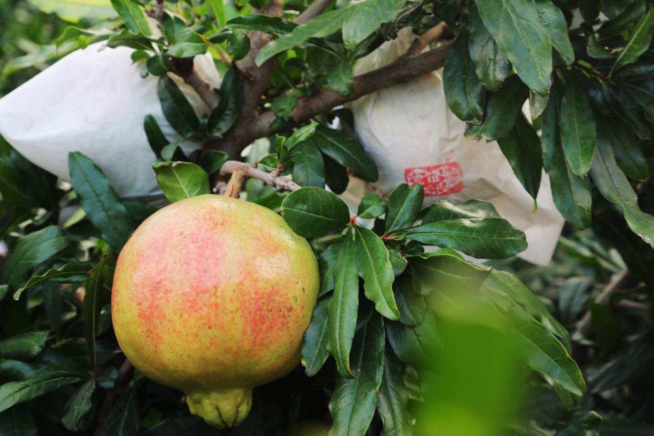 “以前种石榴套袋都不懂,石榴不是被雨水淋了,就是被虫子吃了,品相不好,也卖不出价钱。”望着山坡上一片片套袋后如同“棉花地”的石榴林,起邵平满眼笑意地说:“那边的苗,再过两年都可以挂果了,到时候每棵果树都能像这边这样一季挂三四十颗果子!”
