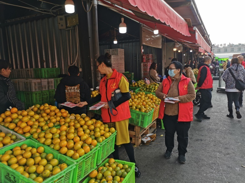另一部分党员志愿者积极来到市场上走访经营户、发放宣传资料,做好垃圾分类监管的宣传动员,与商户交流有关垃圾分类监管的知识,积极引导他们参与环境卫生清扫中来,认真落实门前三包,引导群众真正成为垃圾分类的主体,努力营造全民参与的良好氛围。同时要求市场方采用广播、LED屏等多种形式开展宣传动员,将卫生清洁与垃圾分类工作列入商户考核范围,营造环境卫生人人抓、清洁环境人人享的氛围。