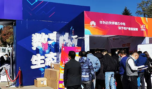 华为云携手云南伙伴能力中心天成科技,在大会会场的主入口处搭起了展台,现场演示华为的企业智慧屏相关产品,同时通过简洁的方式,让中小企业用户体验到华为云的产品能力。