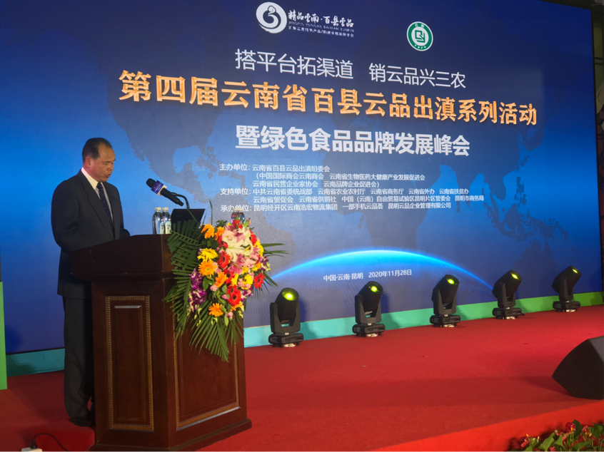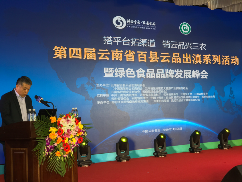 昆明信息港 讯 28日14时,以“搭平台拓渠道 销云品兴三农”为主题的第四届云南省百县云品出滇系列活动暨绿色食品品牌发展峰会在中共云南省委统战部、云南省农业农村厅、云南省商务厅、云南省外办、云南省扶贫办、云南省贸促会、云南省工商联、中国(云南)自由贸易试验区昆明片区管委会的支持下,在昆明自贸区浩宏产业园成功举办。