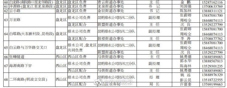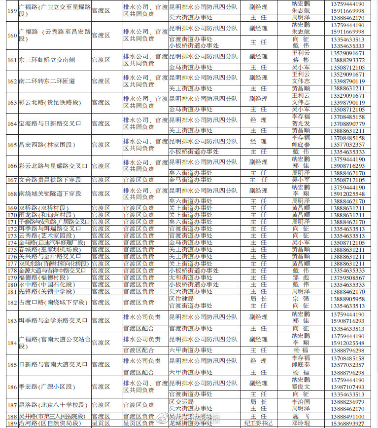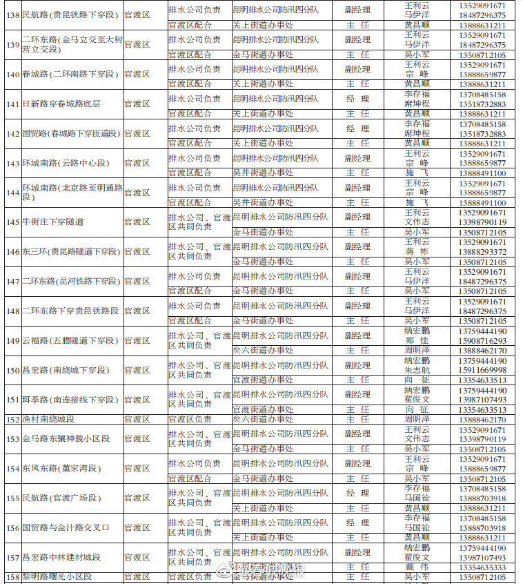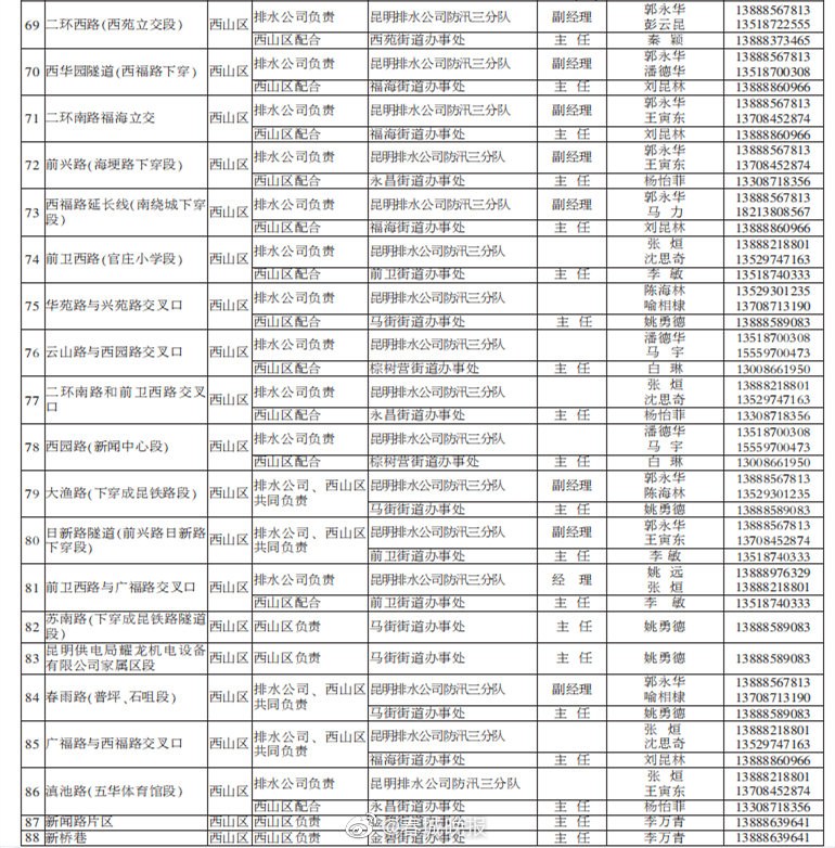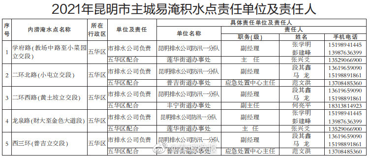 今日(5月21日),市防汛抗旱指挥部、市城市防汛指挥部正式公布今年全市主要江河、湖泊、重要城市大中型水库防汛责任人,以及昆明城市防汛排涝责任人、昆明市主城内涝淹水点责任单位及责任人,督促各地落实防汛工作责任。(昆明日报)2021年#昆明主城205个易淹积水点公布#↓↓