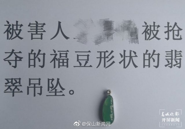 据调查,嫌疑人抢夺的赃物均被出售,大多已无法追回。其中一件翡翠吊坠从腾冲转卖至瑞丽,又被瑞丽买家通过直播带货销至美国客户,办案民警据此线索开展追查,经多次协调督促瑞丽买家,最终将翡翠吊坠从美国追回,经物价鉴定价值37000元。