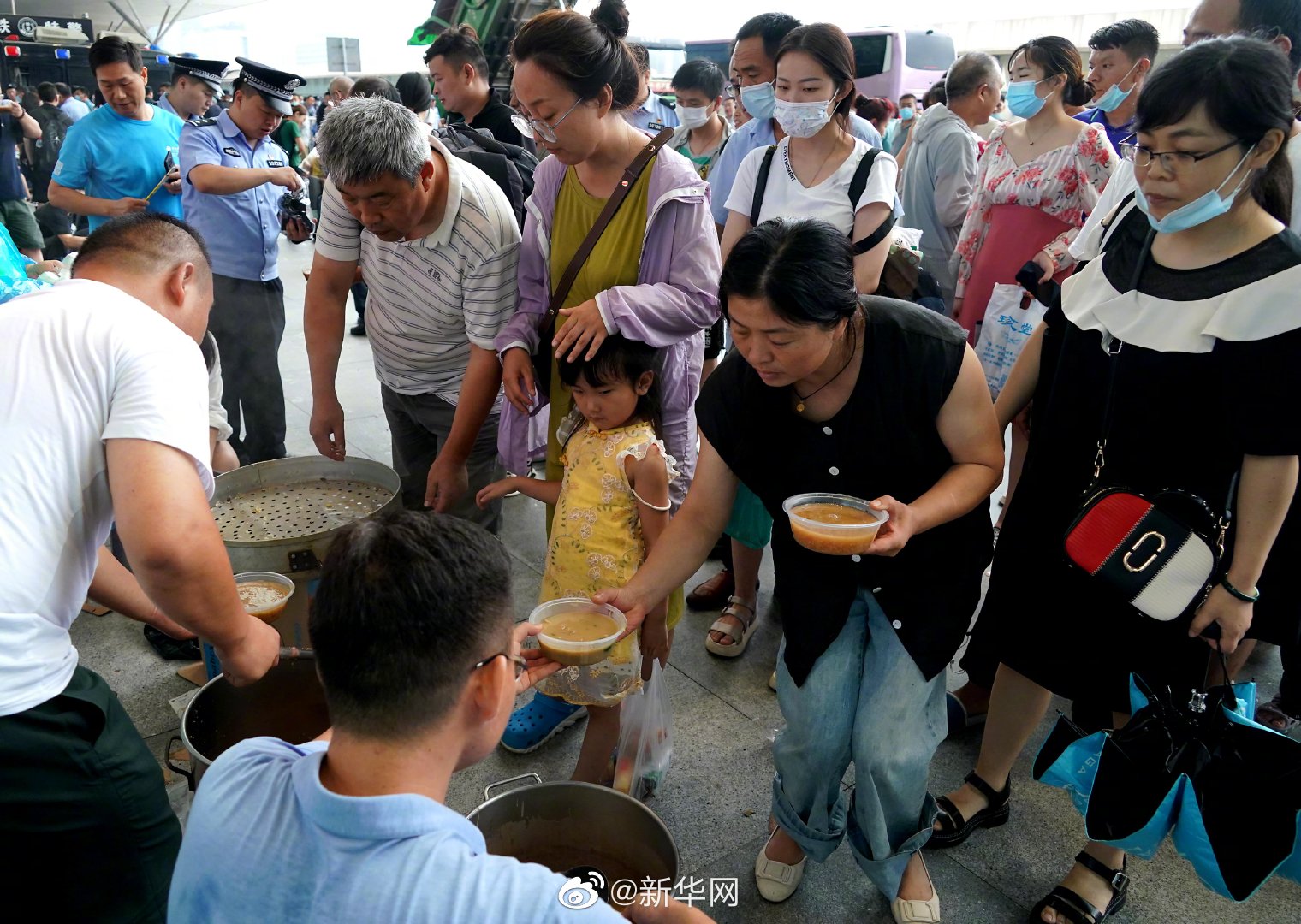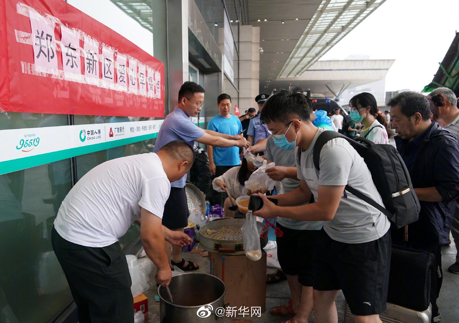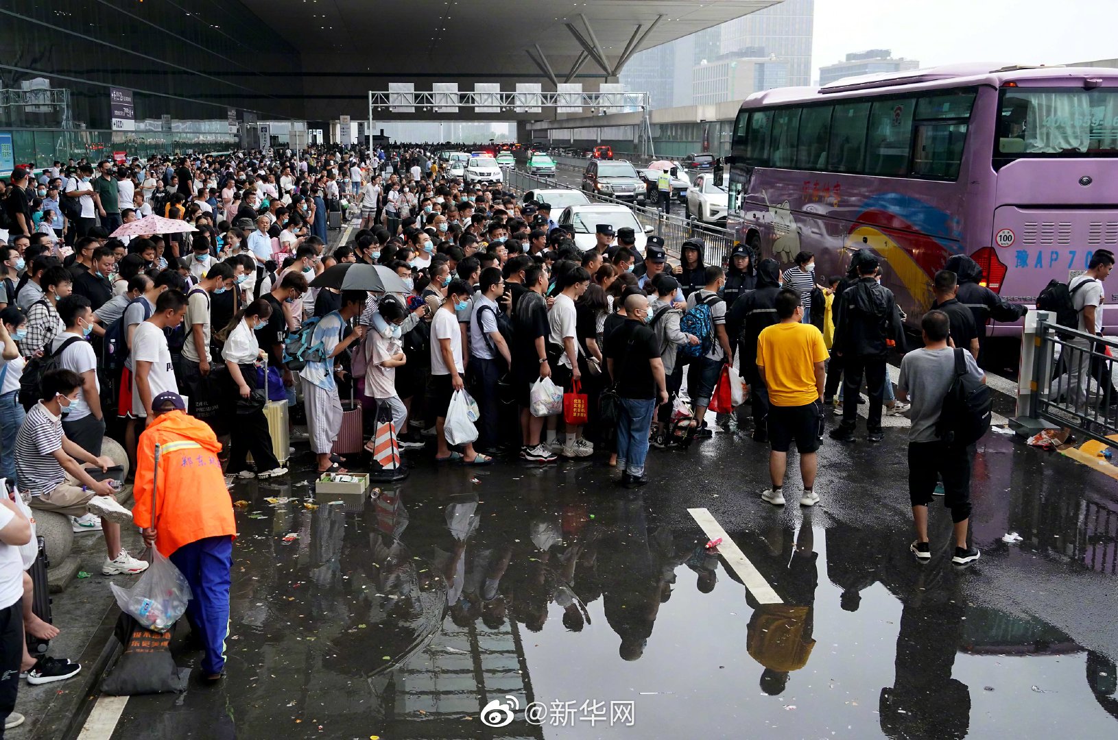 河南一定行7月20日,受强降雨影响,大量旅客滞留郑州东站。铁路部门连夜联系大巴车将旅客运往市区安全地带,并采取措施对滞留站内的旅客做好应急保障工作。7月21日上午,郑州东站候车大厅内滞留旅客已明显减少,工作人员在进站口处组织旅客登乘大巴车,并提供食品。