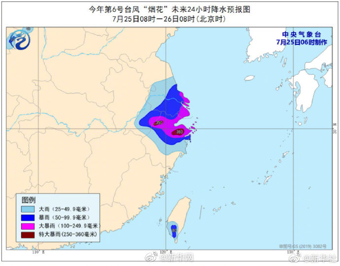 气象专家提醒,台风“烟花”具有路径复杂、影响范围广、风雨潮叠加、登陆后陆上维持时间长、累计雨量大等特点。预计25日白天至29日,浙江中北部、上海、台湾南部、江苏南部、安徽中南部等地累计降雨量为200~500毫米,局地可超过700毫米;最大小时降水量40~60毫米,局地可达80毫米以上。目前浙江北部、安徽南部等地已触发局地山洪气象风险红色预警,请公众做好相关防范,注意安全。
