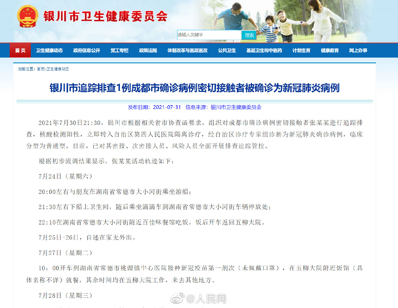 宁夏银川市确诊1例新冠肺炎病例 系成都市确诊病例密切接触者