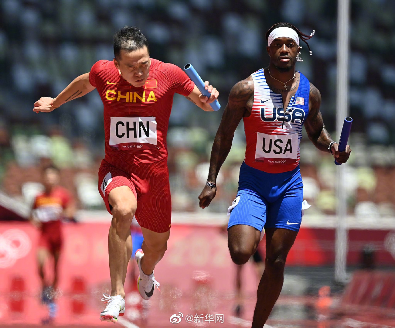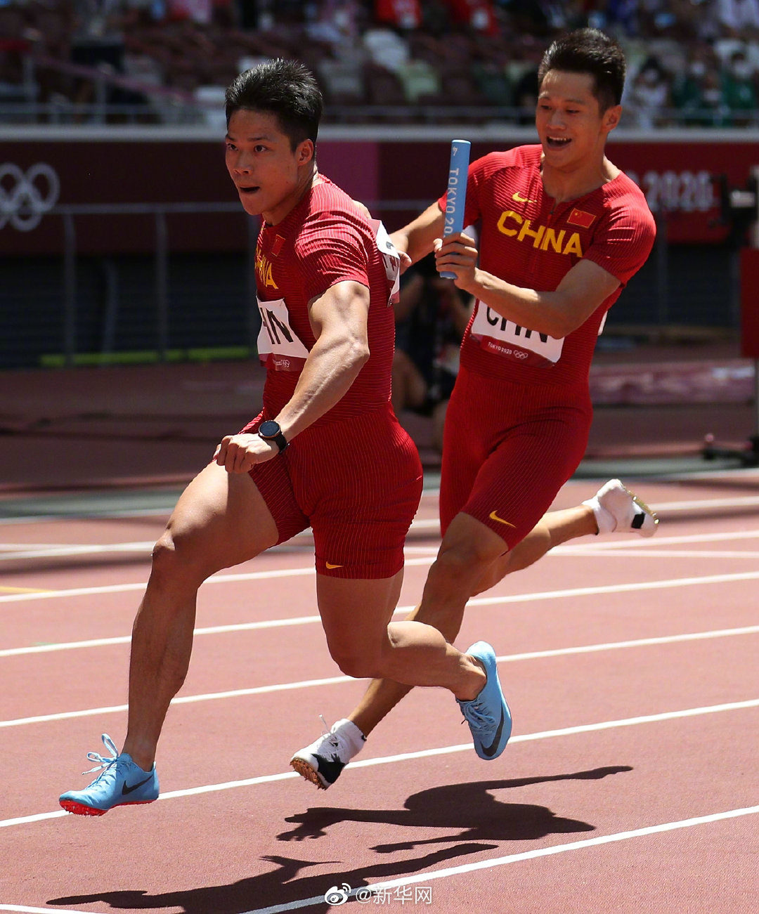8月5日,东京奥运会田径男子4x100米接力比赛在新国立竞技场举行,中国队晋级决赛。