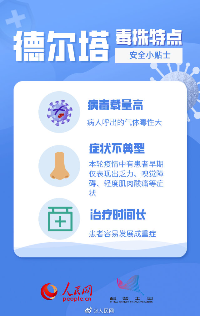 德尔塔毒株的最主要传播方式为呼吸道飞沫传播,此外还包括接触污染物传播和空气传播。目前国产常用疫苗对德尔塔毒株有效,#德尔塔毒株重症患者多为老人小孩#,这些人群应加强疫苗接种...#如何预防德尔塔毒株#?你想知道的都在这里↓↓扩散周知!@科普中国