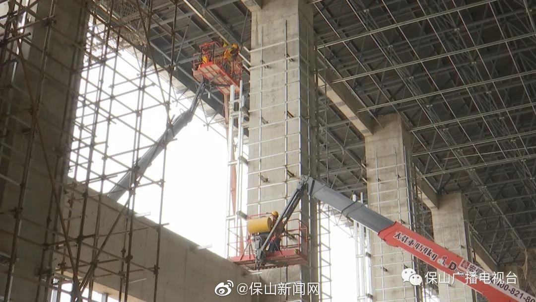 大瑞铁路保山站站房位于隆阳区白塔社区,于2020年12月17日开工建设,建筑面积为12000平方米,采用线侧下式布置,最高聚集人数800人,建筑层数为地上二层,局部地下一层,总耗资达2亿多元。为了确保今年年底能顺利建成投入使用,施工方目前正倒排工期,夜以继日两班倒作业,抓紧时间进行站房幕墙及室内装饰施工。