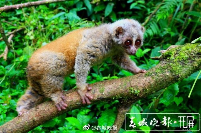 我是蜂猴,前不久本想去怒江边逛逛,结果“露了猴脚”,和人类来了个亲密接触。我怕光,白天喜欢蜷缩成团躲在树洞或者树干上睡觉,晚上出来活动。来看看我的黑眼圈,是的,和熊猫有点像,熊猫是靠“眼影”显眼睛大,好吧!你看看我这“不灵不灵”的大眼睛,那是真水灵……因为动作缓慢,居然有人叫我们“懒猴”,就没人叫我们“淡定哥”吗?
