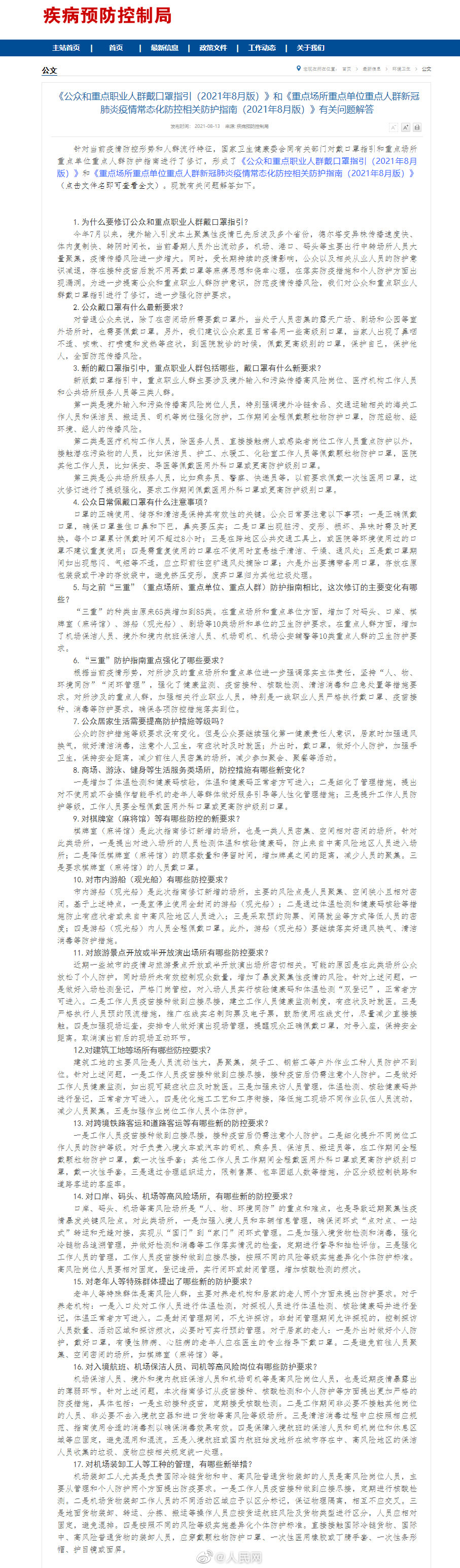 8月13日下午,国务院联防联控机制召开新闻发布会,会上指出:在公众方面,处于人员密集的室外场所,需要佩戴口罩,此前说在室外场所可以不戴口罩。这次提出来,在室外,如果人群密集的话要求戴口罩。同时要求家庭配备一些高等级防护的口罩,在去医疗机构就诊过程中佩戴...详细↓↓ (北京日报客户端)