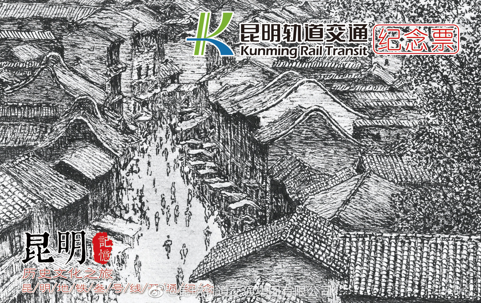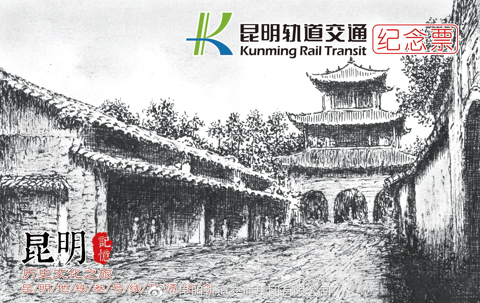 “昆明记忆,历史文化之旅”——昆明地铁三号线开通纪念票面,发行于2016年。