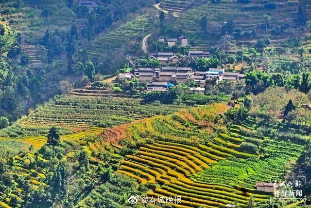 “昼夜均而寒暑平”。今天,是“秋分”节气,也是“中国农民丰收节”。大山深处的保山昌宁,没有一眼望不到边的田野,但这并不影响昌宁秋天的“丰”景,因为有许多大大小小的梯田,让秋天的大山有了独特的魅力。昌宁山高谷深,与乡村人世代相伴的,是顺山而建的天梯般的梯田。秋收季节,一层层梯田泛起了金色,如链似带,大小相嵌,高低错落,层层叠叠。昌宁的梯田,最能让人想起的,是阿背寨梯田。位于澜沧江峡谷深处的这处梯田,是昌宁所有梯田里保存最好的,虽然每年都在变,但始终在坚守着那一方土地,描绘着乡愁。
