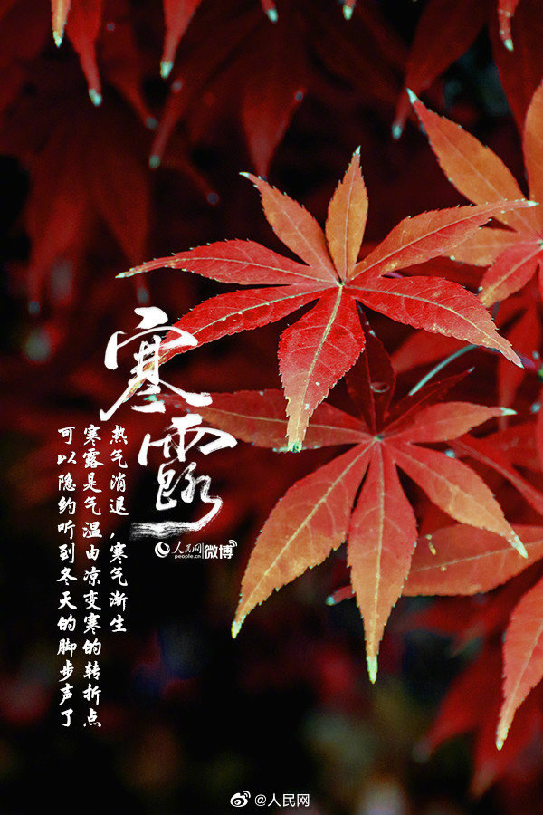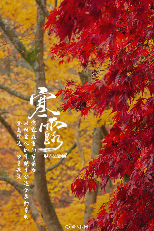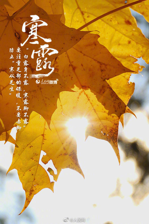 转眼到寒露,翻箱找衣裤。寒露是深秋的节令,标志着凉爽向寒冷转折,可以隐约听到冬天的脚步声了。北方红叶染霜,南方秋意渐浓,正是登高望远、欣赏秋景的好时节。“白露身不露,寒露脚不露”,注重足部的保暖,防止“寒从足生”。秋裤备好了吗?