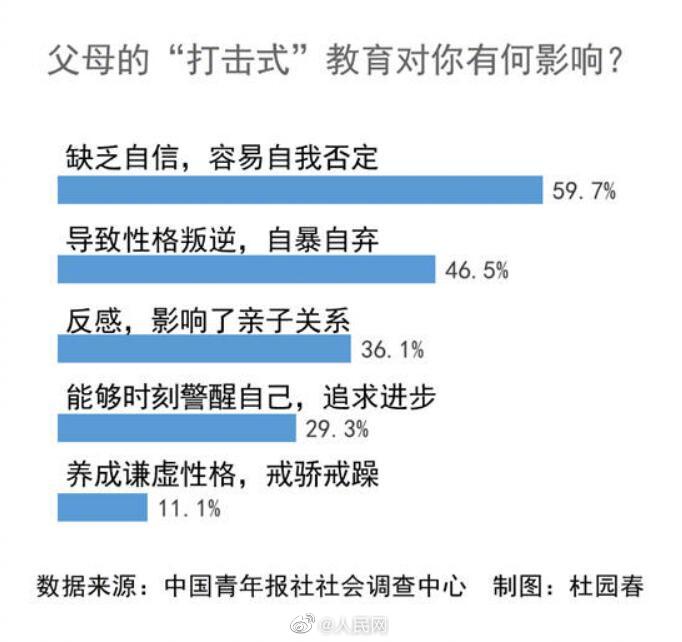 “你看那个谁谁家的孩子多厉害,你再看看你”…很多父母对孩子进行打击式教育,希望能让孩子谦虚、上进。但#父母的打击式教育#一旦过度,往往适得其反。一项调查显示,90.6%的受访青年坦言父母对自己进行过言语上的打击式教育,45.4%的受访青年表示持续到中学。59.7%的受访青年认为打击式教育会导致孩子缺乏自信,容易自我否定。(中青报)九成受访青年坦言父母对自己进行过打击式教育你被父母言语打击过吗?