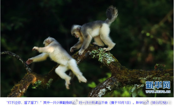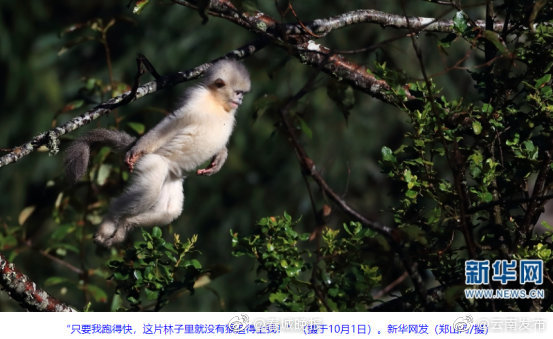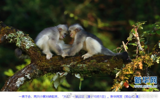云南白马雪山国家级自然保护区里,生活着一种“大眼红唇”的明星物种——滇金丝猴。金秋时节,生态摄影师在保护区内拍摄到一组滇金丝猴“幼崽”的珍贵画面,两只毛色灰白、耳朵尖尖的小家伙,在林间欢快地追逐打闹,演绎了一出丛林“小剧场”。(新华网)