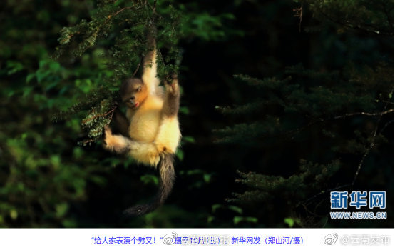 萌化了!云南摄影师拍到滇金丝猴幼崽花式打闹
