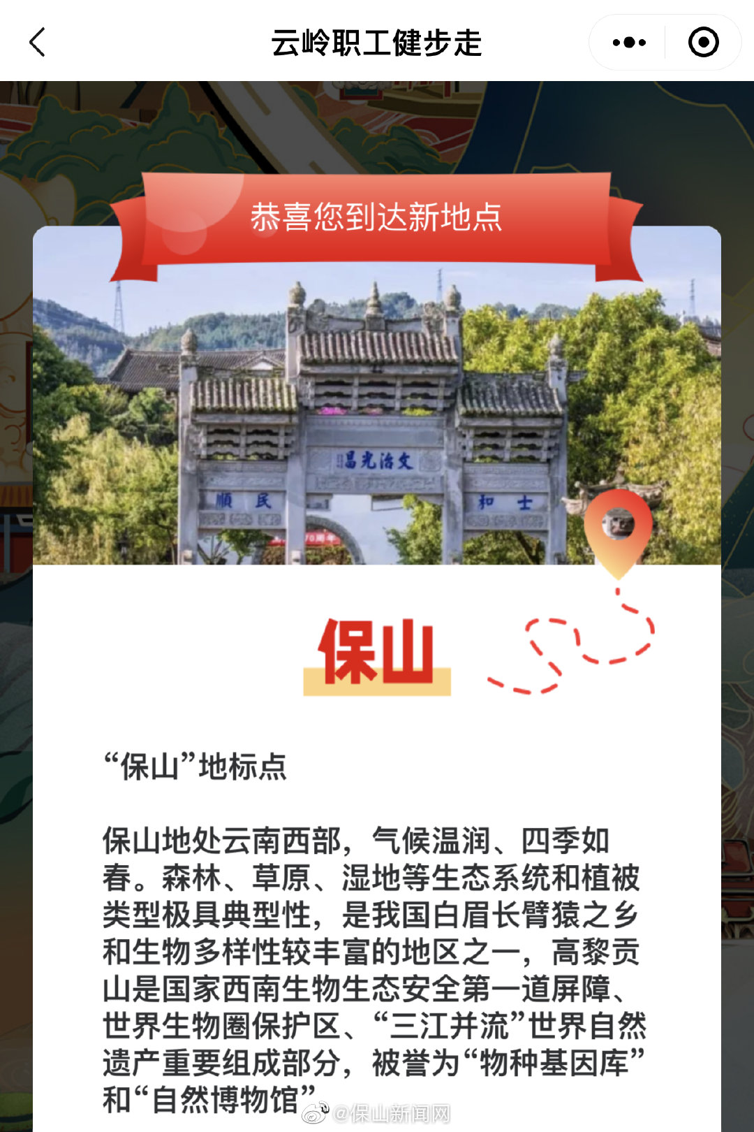 走起!云南省职工线上健步走第二季开启 用步数点亮“保山地标点”