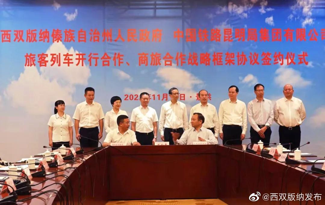 11月19日,西双版纳傣族自治州人民政府与中国铁路昆明局集团有限公司在景洪正式签订《旅客列车开行合作协议》《商旅合作战略框架协议》,标志着西双版纳正式迈入动车时代。