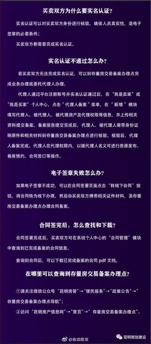 11月30日, “昆明市存量房交易服务平台” 正式上线,二手房买卖合同网签备案可以网上办、掌上办、就近办、自助办、异地办、即时办、不见面办。新的方式,彻底升级了原旧系统单纯的网签备案服务模式,实现了从房源核验、挂牌发布、预约看房、贷款预审、网上签约、备案赋码等房屋买卖全流程一体服务。该系统由建设银行云南省分行、昆明新奇星科技有限公司提供技术支持,这也是市住房和城乡建设局继8月23日推出新建商品房买卖合同网签备案电子签章不见面办理后,房屋买卖方面又一便民利民新举措。新上线的“昆明市存量房交易服务平台”具有四大特色,充分利用互联网、大数据等新信息技术,以市民的办事需求为功能点,以保护交易当事人的合法权益为目标,让市民在二手房交易中卖得放心,买得放心。(昆明规划建设)