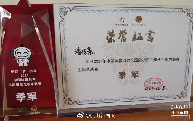 12月5日,“好运‘奕棋’来”2021年中国体育彩票全国象棋民间棋王电视争霸赛总决赛在海南万宁举行,云南保山选手潘佳景力克全国各路民间棋王,取得全国总决赛第3名的骄人战绩,创造了云南象棋(业余)在全国象棋比赛中的历史最佳战绩!