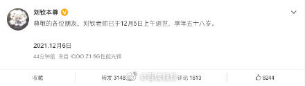 12月6日,据@刘钦本尊 消息,知名配音演员刘钦已于12月5日上午逝世,享年58岁。