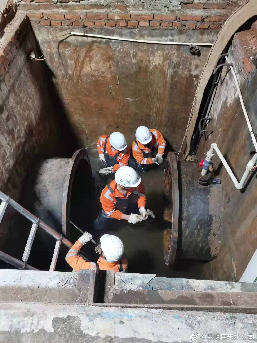 为进一步减小阀门更换对城市供水的影响,本次计划停水利用夜晚低峰供水时段进行。此次计划性停水时长较长主要是为避免原水管承压过大出现损坏,退水要从松花埧枢纽站开始关闭源水,需要一定时间;同时滤池退水以及阀门工位处于构巩物内部水道中,作业面狭窄,施展不开;复水时水厂工艺进水到可向城市并网所需的工艺时间也需要2小时。为保障六水厂阀门更换期间城市供水稳定,昆水集团采取了阀门调整、增加其它水厂产量等措施确保区域用水正常,同时应急送水车辆全程待命以应对可能出现的用水问题,确保了此次计划性停水施工对城市供水的影响降至最低。经过科学施工,合理规划,本次计划停水于6:35原水恢复,7:30开第一台机供水,8:30全面恢复供水,城市管网压力9:00恢复正常,提前4小时完工并恢复正常供水。昆水集团通过采取调整措施,在此期间仅西片区管网压力略有下降,96106客服热线未接到用户低压缺水投诉。