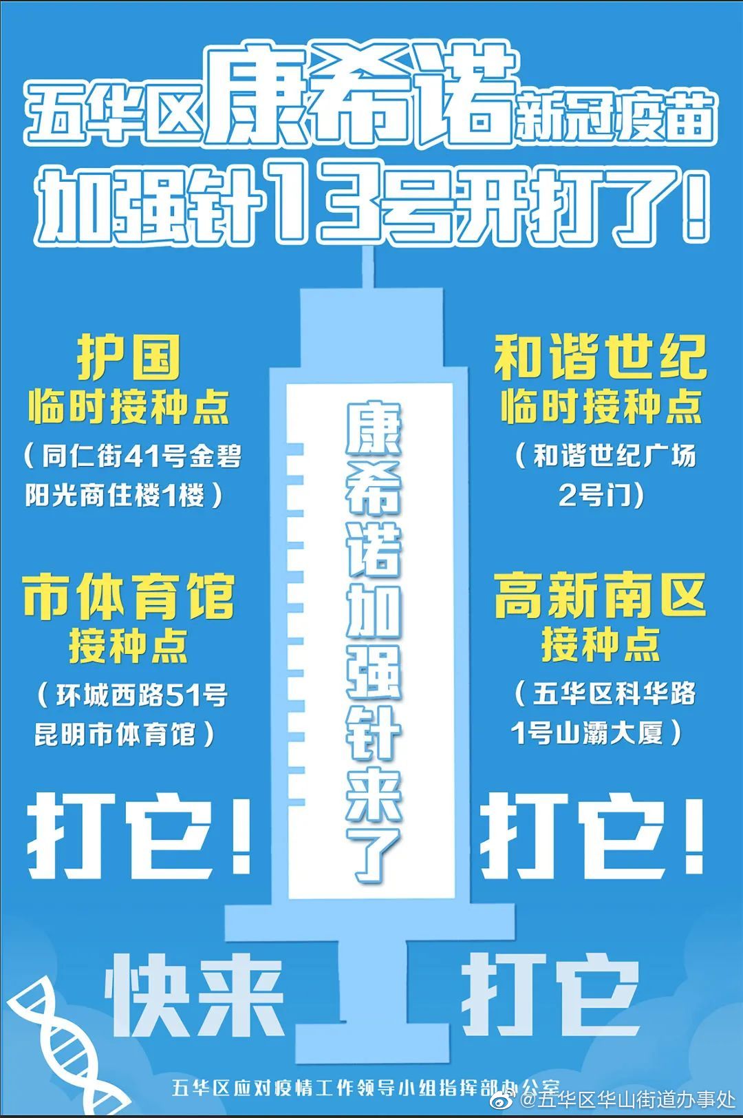 这四个专场接种点位了解一下↓↓↓@昆明五华发布 @昆明发布