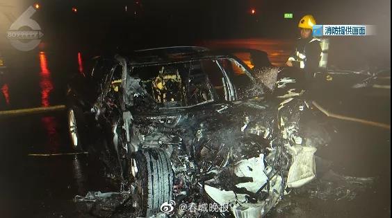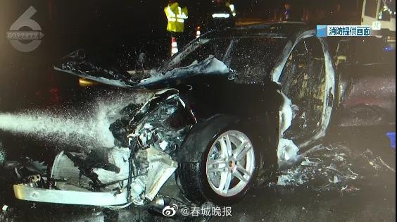3月21日凌晨4点左右,在昆明北京路与丰源路交叉路口,一辆保时捷轿车与前方一辆渣土车相撞,两车相撞后保时捷轿车车头起火燃烧,车辆受损严重。从市民拍摄的视频中可以看到,事故发生后保时捷轿车车头冒出两三米高的明火。现场目击者张先生