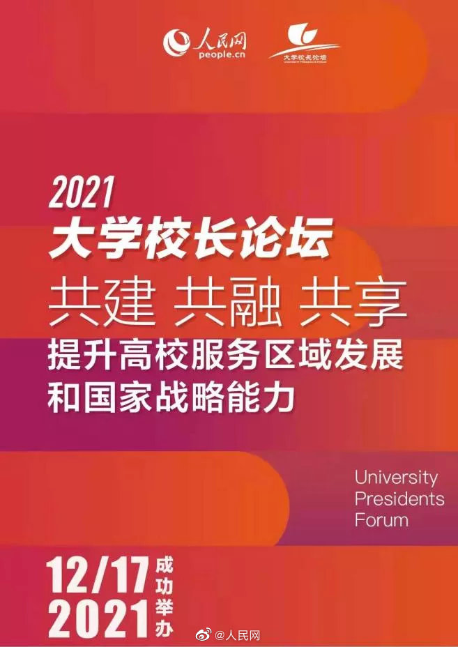 由人民日报社指导,中国高等教育学会提供学术支持,人民网、中共四川省委教育工委、四川省教育厅、成都市人民政府联合主办,成都市教育局、成都市博览局承办的#人民网2021大学校长论坛#12月17日在四川成都举行。论坛上,人民网发布了基于大数据的2020-2021高校社会影响力分析,以及“赓续百年初心 书写奋进华章——人民网2021年高校优秀校园新闻作品”。由人民网发起的高校互联网“大思政课”共建机制也在论坛上启动。