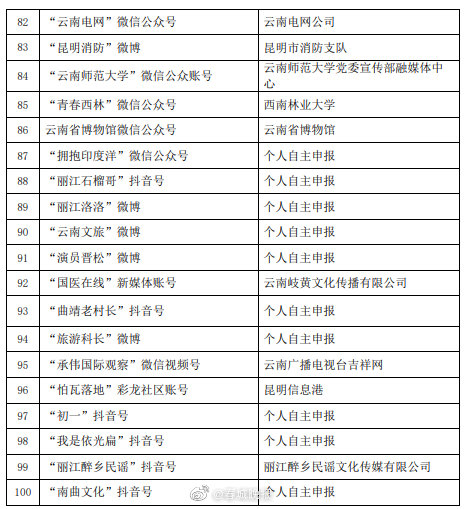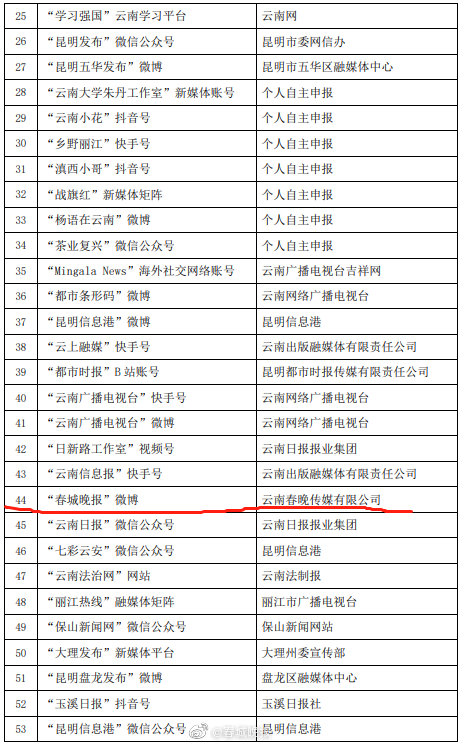 开屏新闻客户端、春城晚报微博入选“云南网络正能量传播示范账号”