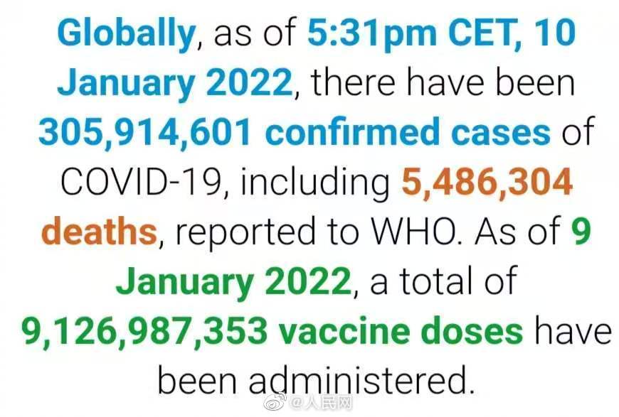 根据世卫组织最新实时统计数据,截至欧洲中部时间1月10日17时31分(北京时间1月11日0时31分),全球累计新冠肺炎确诊病例305914601例,累计死亡病例5486304例。#全球新冠死亡病例超548万#(央视)