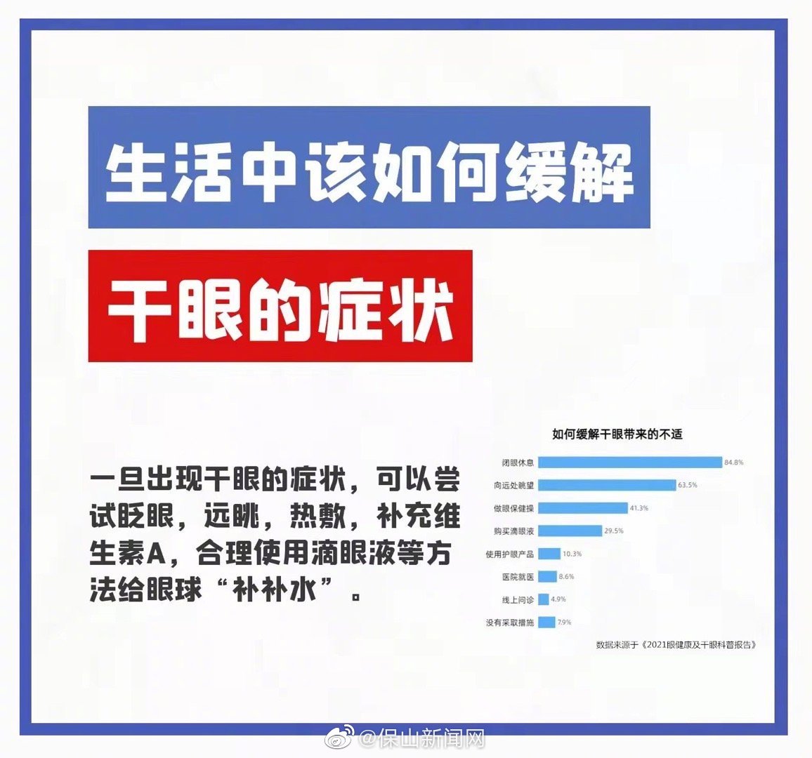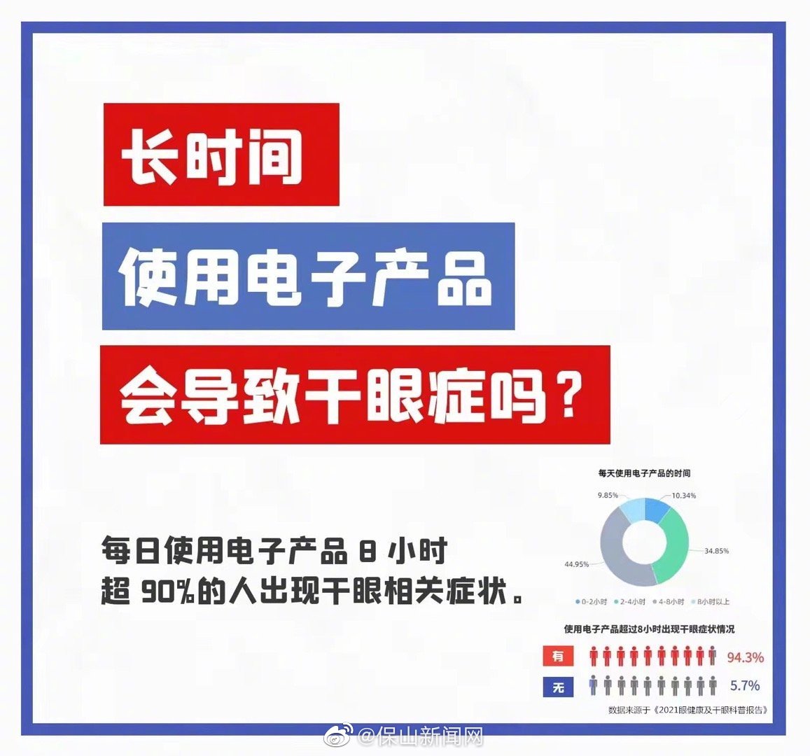 ④每日使用电子产品超过8小时的人,超90%出现眼干的相关症状。